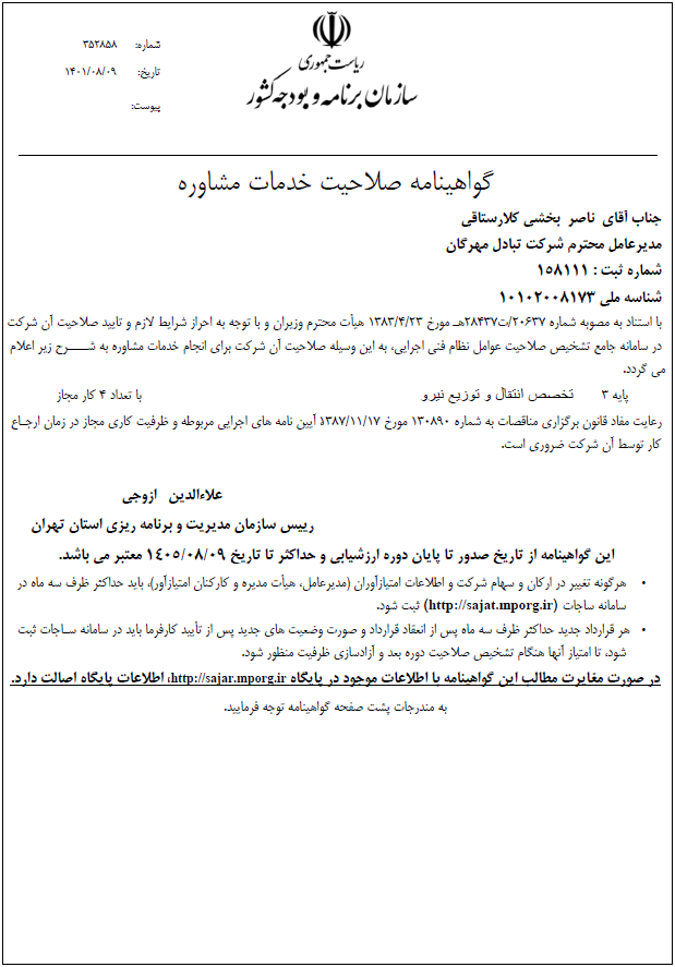شرکت تبادل مهرگان در سال 1378 با شماره ثبت 158111 با موضوع طرح و اجرای پروژه های احداث و یهینه سازی پستهای فشار قوی، فشار متوسط و طرحهای صنعتی تاسیس و با تست و راه اندازی پستهای فشار قوی کار خود را آغاز نمود. پس از کسب تجربیات اجرایی، حوزه فعالیت خود را به مطالعات سیستم، طراحی و خدمات مهندسی و نظارت کارگاهی که در واقع خدمات مشاوره میباشد گسترش داد و پس از آن با توجه به توانمندی موجود در شرکت در زمینه سیستمهای کنترل و ابزار دقیق، پروژه های برق و ابزار دقیق صنعت نفت، گاز و پتروشیمی عرصه جدیدی برای فعالیت شرکت تبادل گردید.